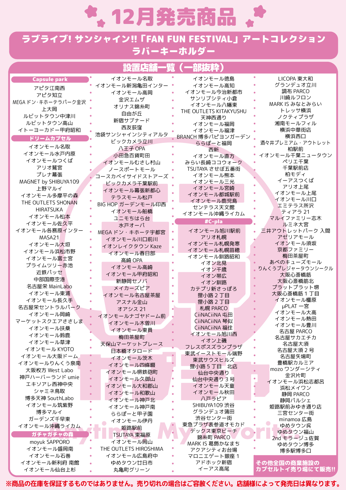 • 全国のカプセルトイ専門店や商業施設、アミューズメント施設等に設置されているカプセルトイ筐体でお楽しみください。