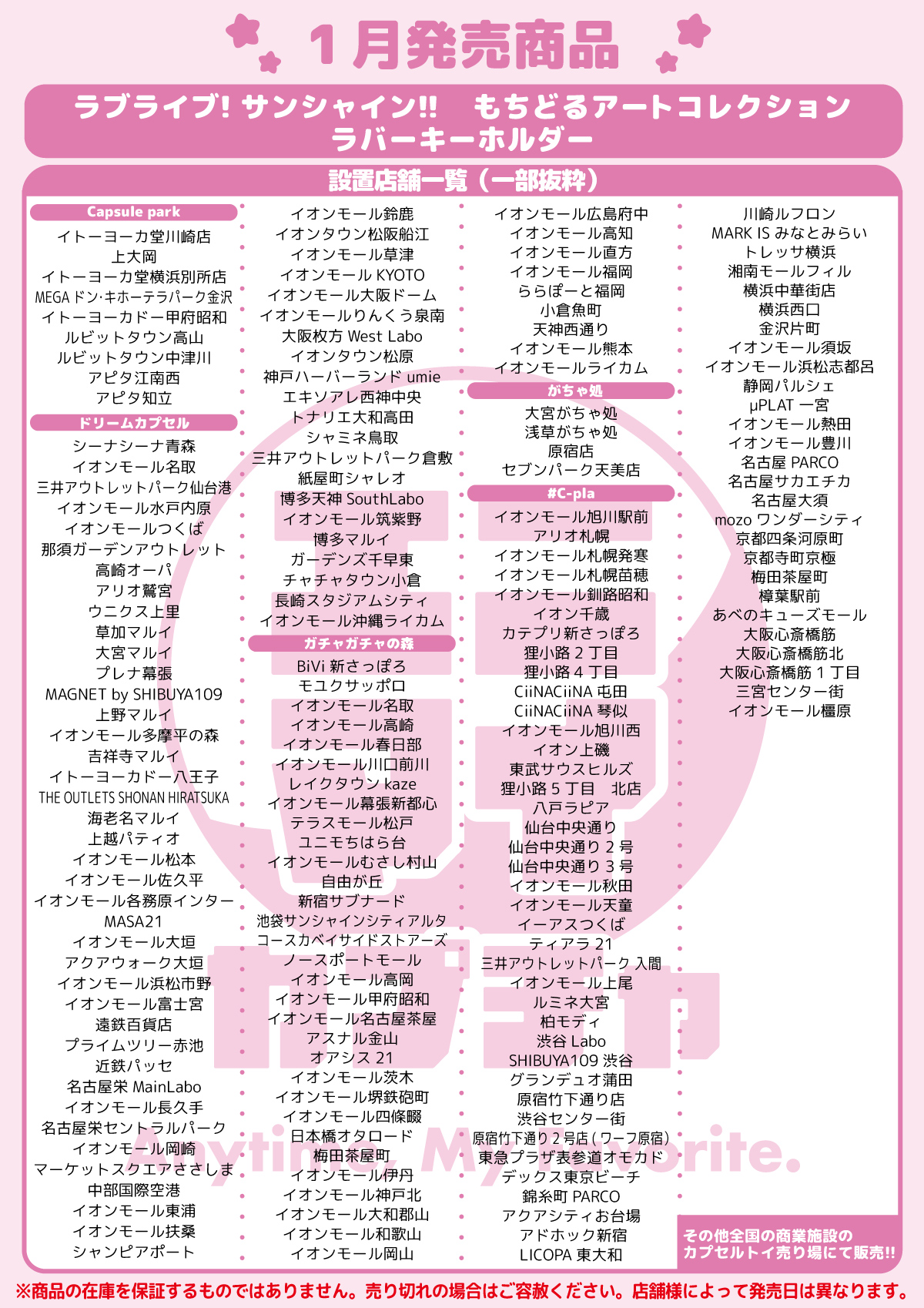 • 全国のカプセルトイ専門店や商業施設、アミューズメント施設等に設置されているカプセルトイ筐体でお楽しみください。