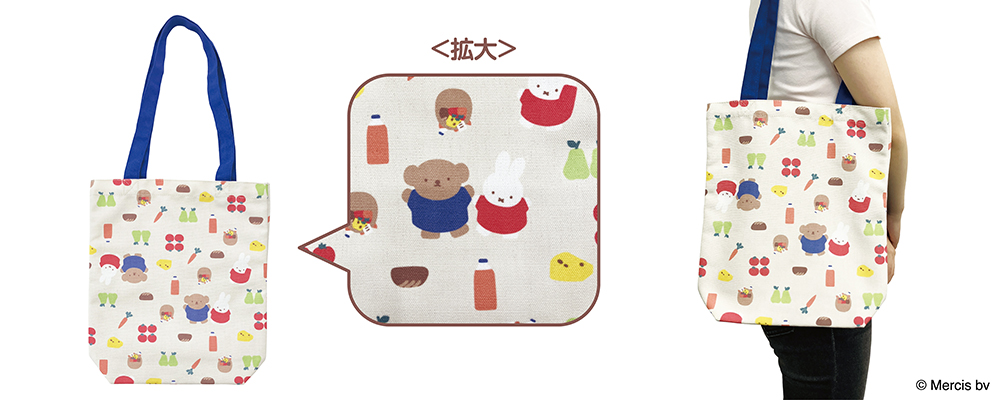 A4サイズが収納可能な肩掛けトートバッグ、収納力抜群のマルチポーチ、ミッフィーとボリスが存在感たっぷりのバッグチャーム、会社やご自宅でも使えるメモ2個セット、手帳や手紙をかわいく装飾できるマスキングテープセットの計5商品をラインナップ。